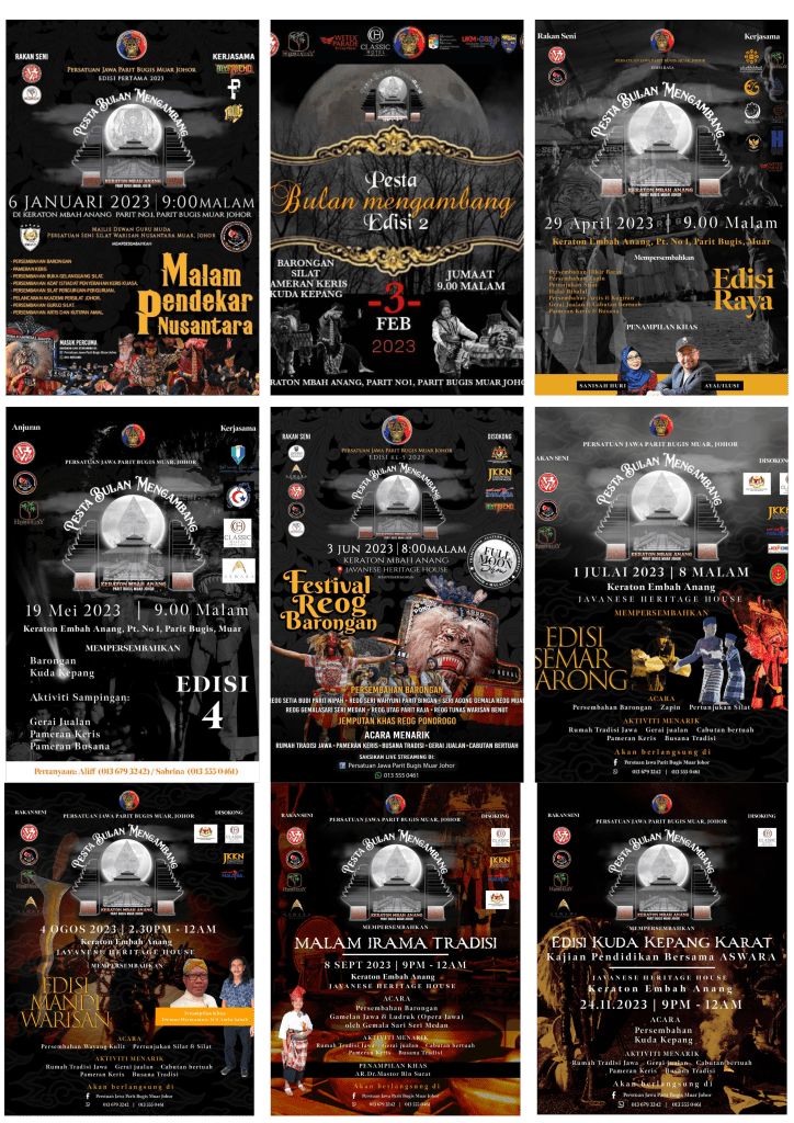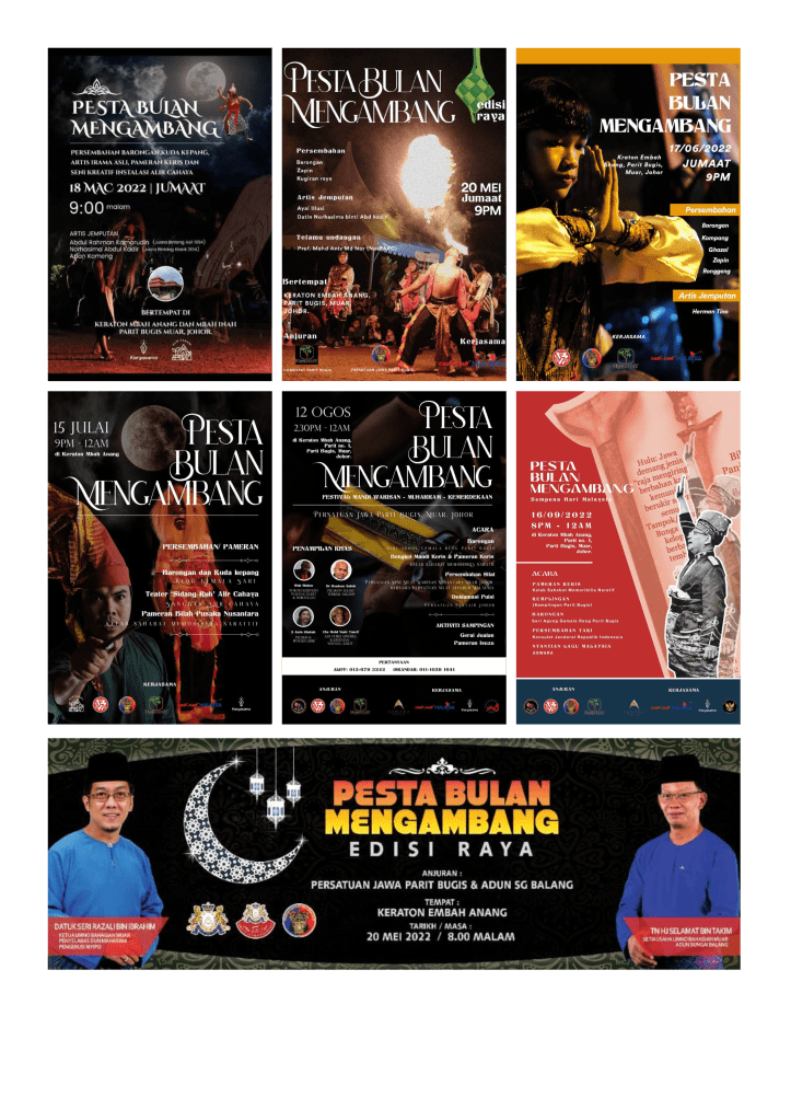 Berbekalkan kepercayaan dan sokongan berterusan yang telah diberikan oleh pelbagai pihak terutamanya daripada Kementerian Pelancongan, Seni dan Budaya Malaysia (MOTAC), Tourism Malaysia dan juga Jabatan Kebudayaan dan Kesenian Negara, Johor kami telah berjaya melaksanakan secara bulanan Program Pesta Bulan Mengambang.